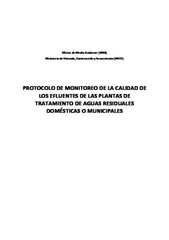 PROTOCOLO DE MONITOREO DE LA CALIDAD DE LOS EFLUENTES DE LAS PLANTAS DE TRATAMIENTO DE AGUAS RESIDUALES DOMÉSTICAS O MUNICIPALES