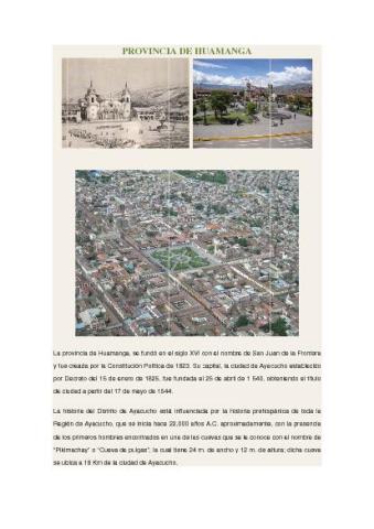 La provincia de Huamanga, se fundó en el siglo XVI con el nombre de San Juan de la Frontera y fue creada por la Constitución Política de 1823. Su capital, la ciudad de Ayacucho establecido por Decreto del 15 de enero de 1825, fue fundada el 25 de abril de 1 540, obteniendo el título de ciudad a partir del 17 de mayo de 1544.