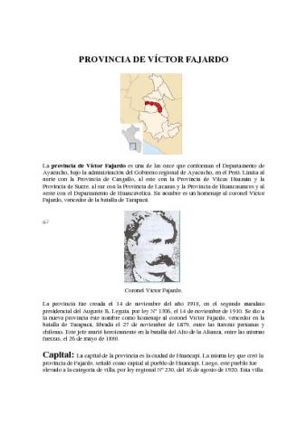 La provincia de Víctor Fajardo es una de las once que conforman el Departamento de Ayacucho, bajo la administración del Gobierno regional de Ayacucho, en el Perú. Limita al norte con la Provincia de Cangallo, al este con la Provincia de Vilcas Huamán y la Provincia de Sucre, al sur con la Provincia de Lucanas y la Provincia de Huancasancos y al oeste con el Departamento de Huancavelica. Su nombre es un homenaje al coronel Víctor Fajardo, vencedor de la batalla de Tarapacá.