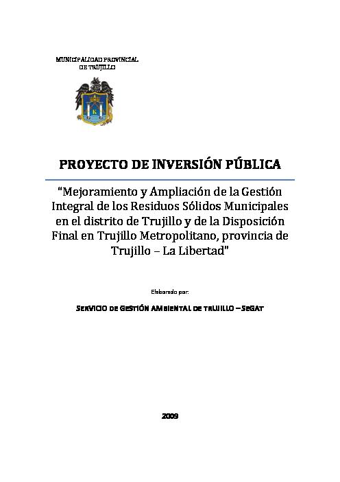 Proyecto de Inversión Pública Mejoramiento y Ampliación de la Gestión Integral de los Residuos Sólidos Municipales en el Distrito de Trujillo y de la Disposición Final en Trujillo Metropolitano