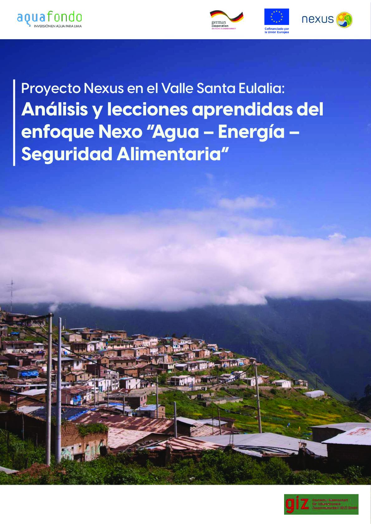 AQUAFONDO. 2023, Proyecto Nexus en el Valle Santa Eulalia: Análisis y lecciones aprendidas del enfoque Nexo “Agua – Energía – Seguridad Alimentaria”. Fondo de Agua para Lima y Callao – AQUAFONDO. 1ra Ed. Lima, Perú.