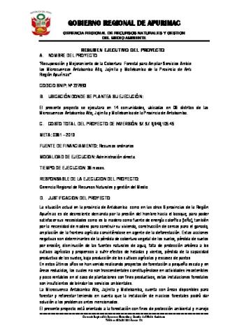 PROYECTO: “RECUPERACIÓN Y MEJORAMIENTO DE LA COBERTURA FORESTAL PARA AMPLIAR SERVICOS AMBIENTALES EN LAS MICROCUENCAS DE ANTABAMBA ALTO, JAJIMLLA Y MOLLEBAMBA, DE LA PROVINCIA DE ANTABAMBA - REGIÓN APURÍMAC”