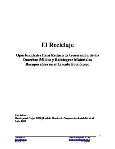 El reciclaje, oportunidades para reducir la generación de los desechos sólidos y reintegrar materiales recuperables en el círculo económico