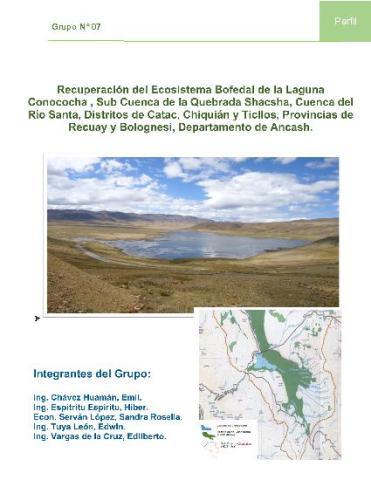 “Recuperación del Ecosistema Bofedal de la Laguna Conococha , Sub Cuenca de la Quebrada Shacsha, Cuenca del Río Santa, Distritos de Catac, Chiquián y Ticllos, Provincias de Recuay y Bolognesi, Departamento de Ancash”