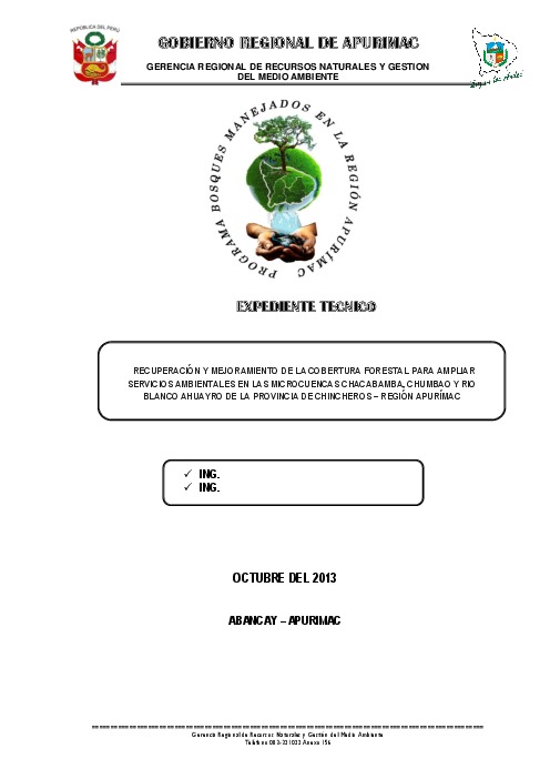 RECUPERACIÓN Y MEJORAMIENTO DE LA COBERTURA FORESTAL PARA AMPLIAR SERVICIOS AMBIENTALES EN LAS MICROCUENCAS CHACABAMBA, CHUMBAO Y RIO BLANCO AHUAYRO DE LA PROVINCIA DE CHINCHEROS – REGIÓN APURÍMAC