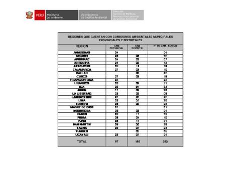 Regiones que cuentan con Comisiones Ambientales Municipales Provinciales y Distritales