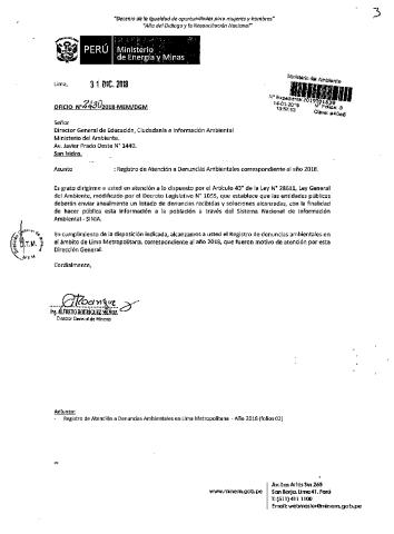Registro de Atención a Denuncias Ambientales correspondiente al año 2018 Ministerio de Energía y Minas