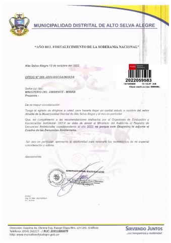 Registro de denuncias ambientales 2022 de la Municipalidad Distrital de Alto Selva Alegre