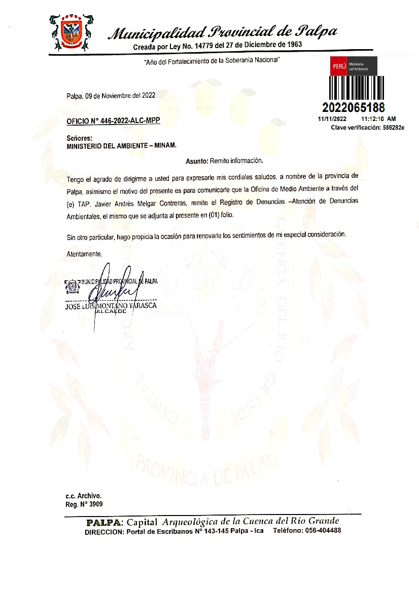 Registro de denuncias ambientales de la Municipalidad Provincial de Palpa