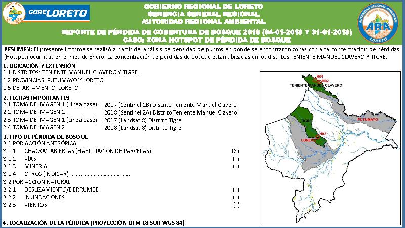 Reporte de alerta temprana de perdida de bosques en el departamento de Loreto - enero 2018 Caso: zona hotspot