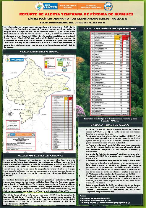 Reporte de alerta temprana de perdida de bosques en el departamento de Loreto - marzo 2018