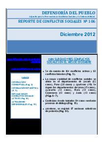 Reporte de conflictos sociales N° 106, Diciembre 2012