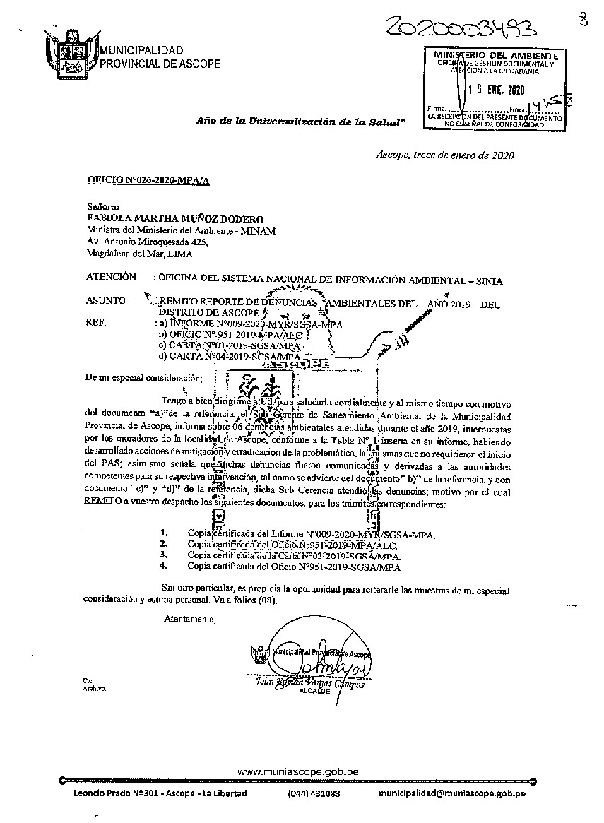 Reporte de denuncias ambientales del año 2019 Distrito de Ascope