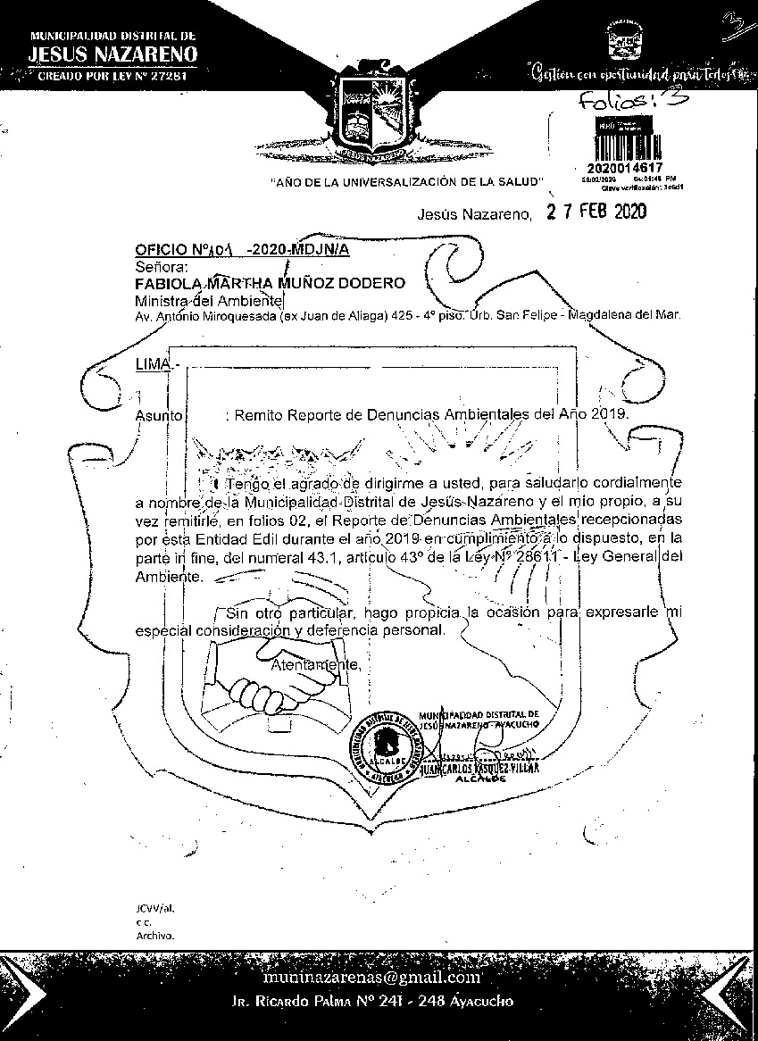 Reporte de Denuncias Ambientales del Año 2019. Municipalidad Distrital de Jesus Nazareno