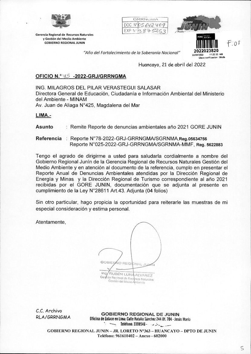 Reporte de denuncias ambientales año 2021 GORE JUNIN