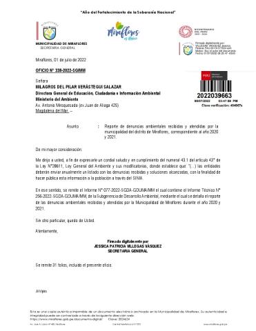 Reporte de denuncias ambientales recibidas y atendidas por la municipalidad del distrito de Miraflores, correspondiente al año 2020 y 2021.