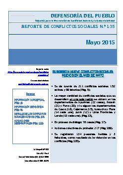Reporte Mensual de Conflictos Sociales N° 135, mayo 2015