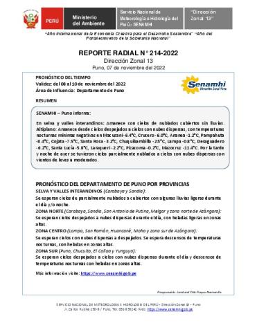 Reporte radial del 07 de noviembre del 2022