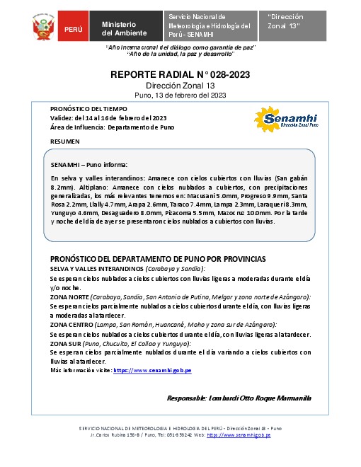 Reporte radial del 13 de febrero del 2023