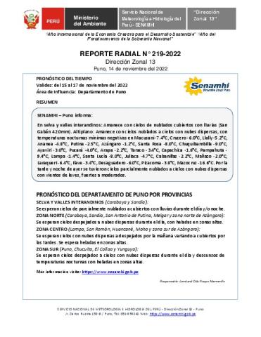 Reporte radial del 14 de noviembre del 2022
