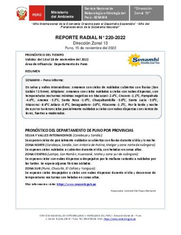 Reporte radial del 15 de noviembre del 2022