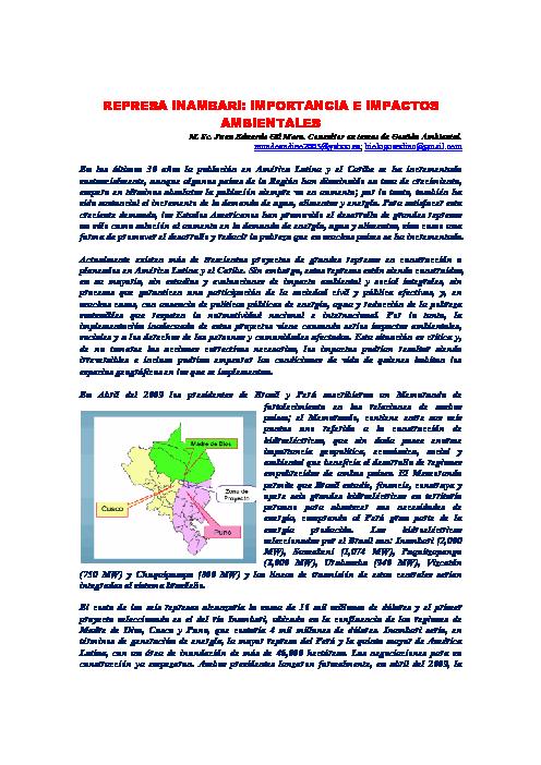 Represa Inambari: Importancia e impactos Ambientales