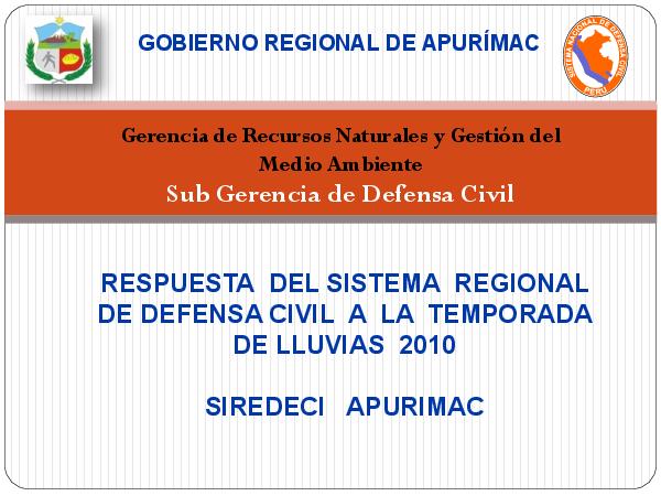 Respuesta del sistema regional de Defensa Civil a la temporada de lluvias 2010