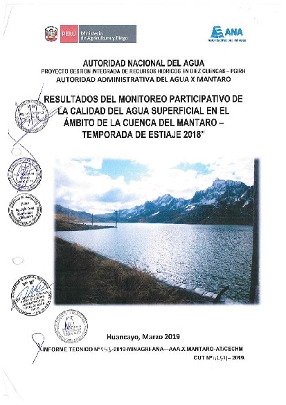 RESULTADOS DEL MONITOREO PARTICIPATIVO DE LA CALIDAD DEL AGUA SUPERFICIAL EN EL AMBITO DE LA CUENCA DEL MANTARO – TEMPORADA DE ESTIAJE - 2018