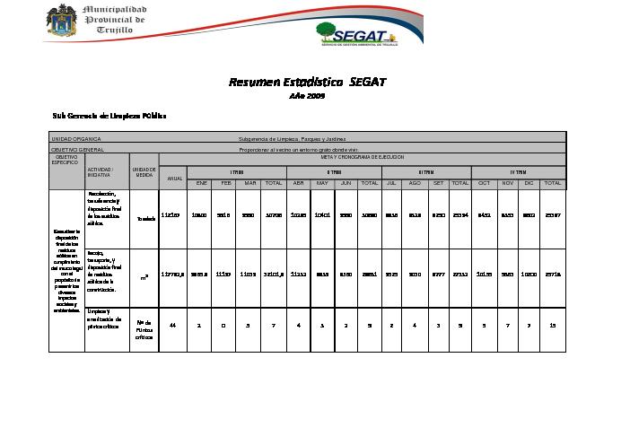 Resumen Estadístico del Servicio de Gestión Ambiental de Trujillo-SEGAT, 2009