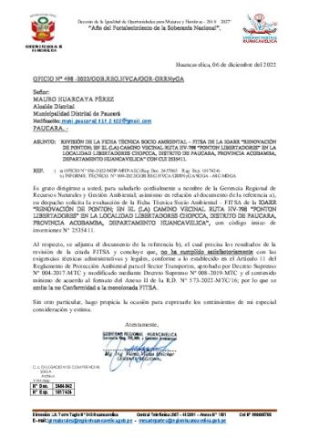 REVISIÓN DE LA FICHA TÉCNICA SOCIO AMBIENTAL – FITSA DE LA IOARR “RENOVACIÓN DE PONTON; EN EL (LA) CAMINO VECINAL RUTA HV-798 “PONTON LIBERTADORES” EN LA LOCALIDAD LIBERTADORES CHOPCCA, DISTRITO DE PAUCARA, PROVINCIA ACOBAMBA, DEPARTAMENTO HUANCAVELICA” CON CUI 2535411.