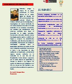 La presente revista elaborada por el Instituto de Investigaciones en la Amazonía Peruana (IIAP), presenta los trabajos realizados por las invetigadoras e investigadores sobre el manejo sostenible de las mariposas amazónicas, también, conocer más sobre las nuevas tecnologías que pueden ayudar a revitalizar las lenguas y recuperar los conocimientos tradicionales, cada día más vulnerables a la desaparición. Asimismo, aborda los trabajos de investigación realizados sobre la propagación vegetativa de especies de alto valor ecológico y económico, entre otros temas que se esperan alcancen las expectativas del lector.