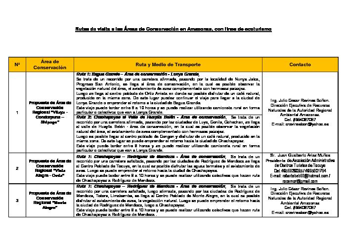 Rutas de visita a las Áreas de Conservación en Amazonas, con fines de ecoturismo