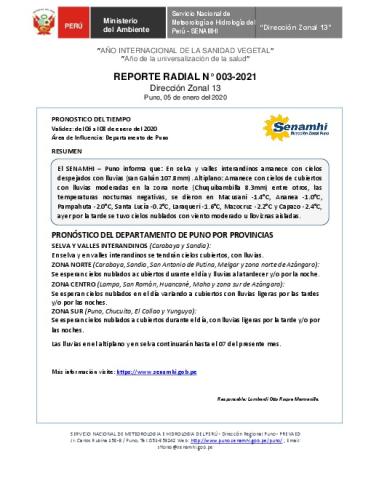 SENAMHI-DZ13 Puno: Reporte radial de 05 de enero del 2021
