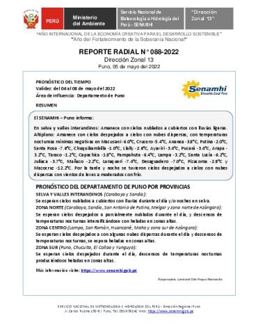 SENAMHI-DZ13 Puno: Reporte radial del 05 de mayo del 2022