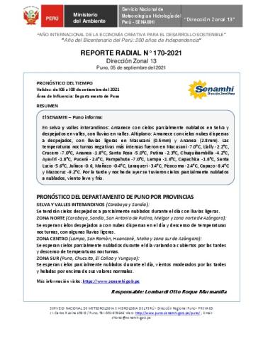SENAMHI-DZ13 Puno: Reporte radial del 05 de septiembre del 2021