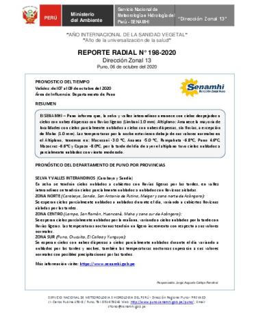 SENAMHI-DZ13 Puno: Reporte radial del 06 de octubre del 2020