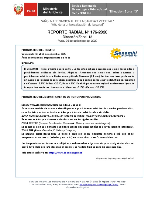 SENAMHI-DZ13 Puno: Reporte radial de 06 de setiembre del 2020