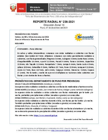 SENAMHI-DZ13 Puno: Reporte radial del 07 de diciembre del 2021