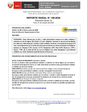 SENAMHI-DZ13 Puno: Reporte radial de 07 de octubre del 2020
