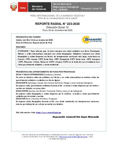 SENAMHI-DZ13 Puno: Reporte radial de 09 de noviembre del 2020
