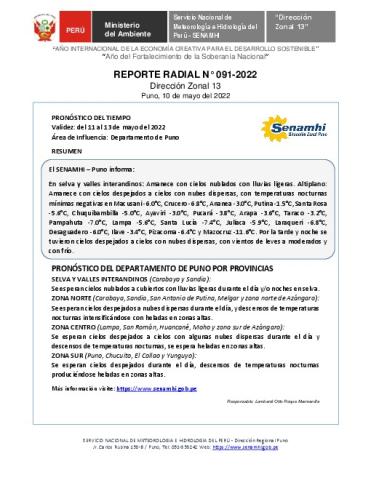 SENAMHI-DZ13 Puno: Reporte radial del 10 de mayo del 2022