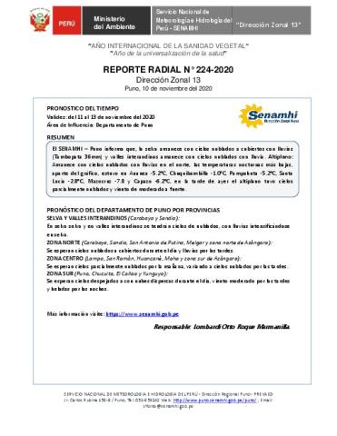 SENAMHI-DZ13 Puno: Reporte radial de 10 de noviembre del 2020