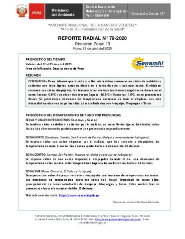 SENAMHI-DZ13 Puno: Reporte radial de 12 de abril del 2020