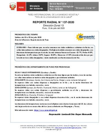 SENAMHI-DZ13 Puno: Reporte radial de 12 de julio del 2020