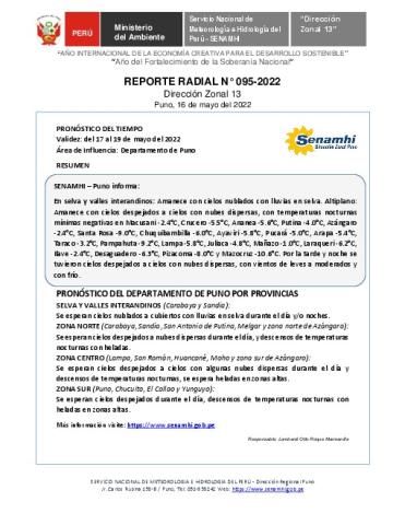 SENAMHI-DZ13 Puno: Reporte radial del 16 de mayo del 2022