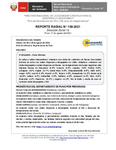 SENAMHI-DZ13 Puno: Reporte radial del 17 de agosto del 2021
