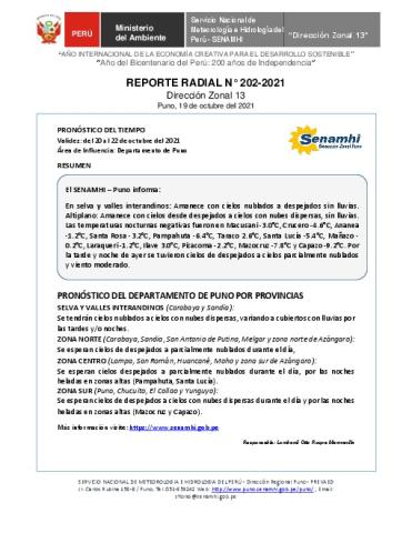 SENAMHI-DZ13 Puno: Reporte radial del 19 de octubre del 2021