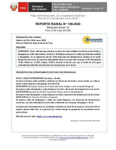 SENAMHI-DZ13 Puno: Reporte radial de 21 de mayo del 2020