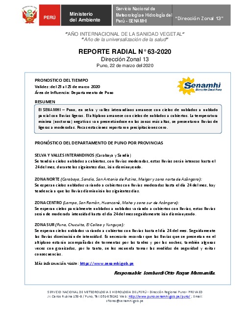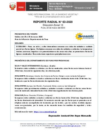 SENAMHI-DZ13 Puno: Reporte radial de 22 de marzo del 2020