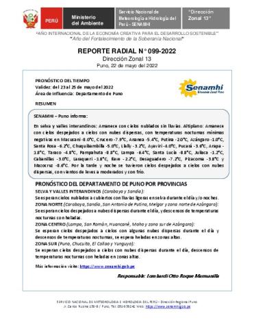 SENAMHI-DZ13 Puno: Reporte radial del 22 de mayo del 2022